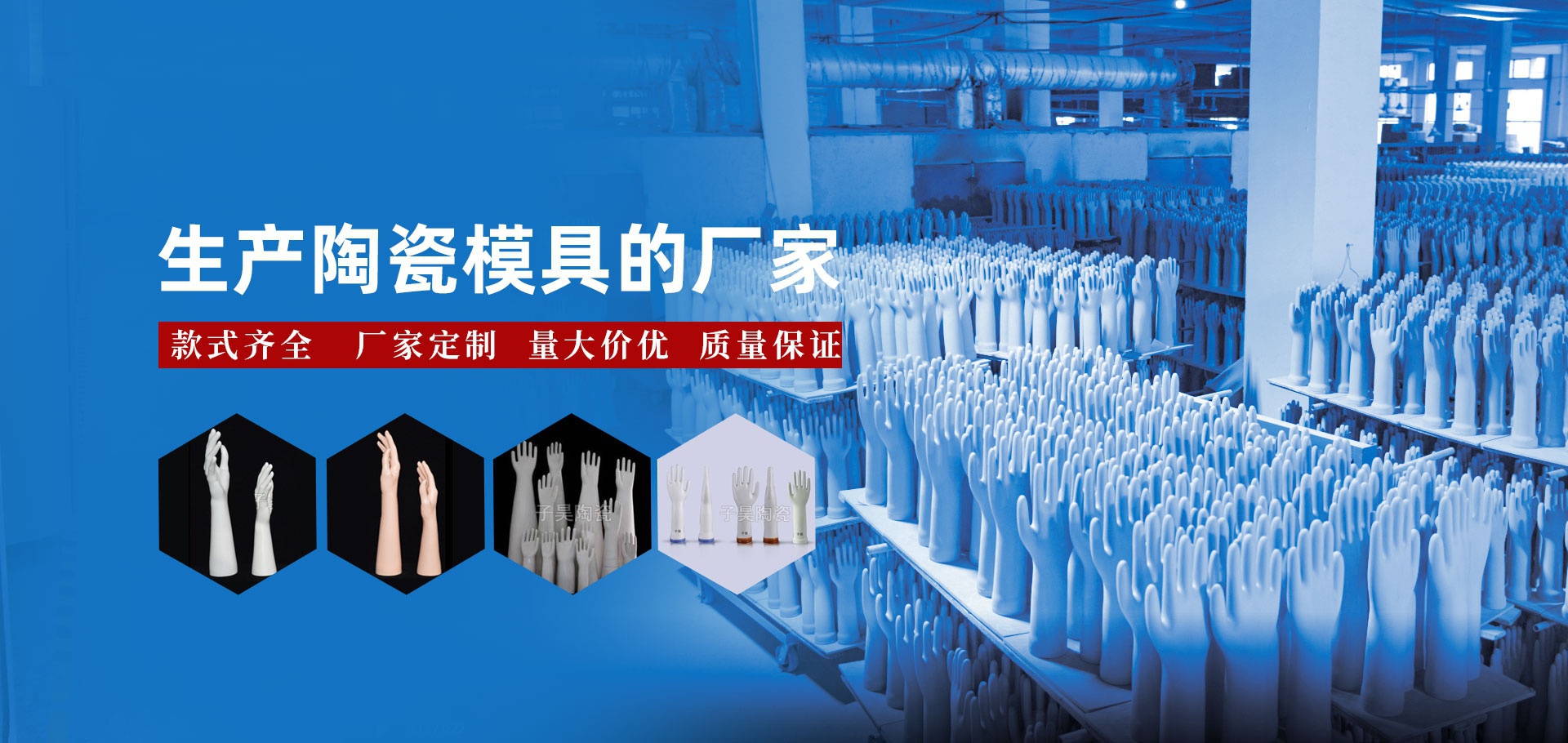 景德鎮(zhèn)子昊陶瓷有限公司成立于2012年,公司總面積1.5萬(wàn)平方米,坐落于景德鎮(zhèn)瓷都高新開(kāi)發(fā)區(qū)。專(zhuān)業(yè)生產(chǎn)和定制各種陶瓷手模廠(chǎng)家。主要產(chǎn)品有:PVC手模、丁腈手模、 乳膠手模(檢查 醫(yī)用手模 ) 丁基手模等陶瓷手模。日產(chǎn)量過(guò)萬(wàn),是目前江西規(guī)模較大手模生產(chǎn)基地。